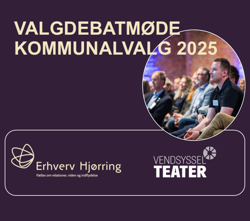 Erhverv Hjørring og Vendsyssel Teater indbyder hermed alle til et politisk valgmøde, tirsdag den 28. oktober 2025 kl. 15.00-17.00 på Vendsyssel Teater.